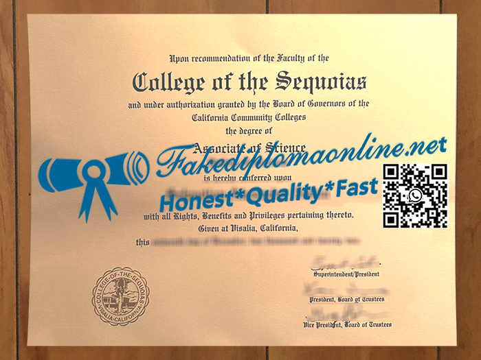 I am looking for a realistic College of the Sequoias degree certificate online